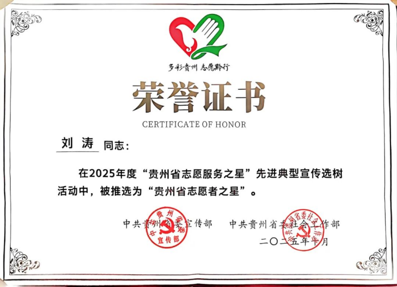 10月29日至30日,省委社会工作部在遵义市举行2025年全省志愿服务项目展示交流活动暨2025年“贵州省志愿服务之星”集中发布仪式。安顺公路管理局工程处刘涛荣获2025年度“贵州省志愿者之星”称号,并在现场接受颁奖。