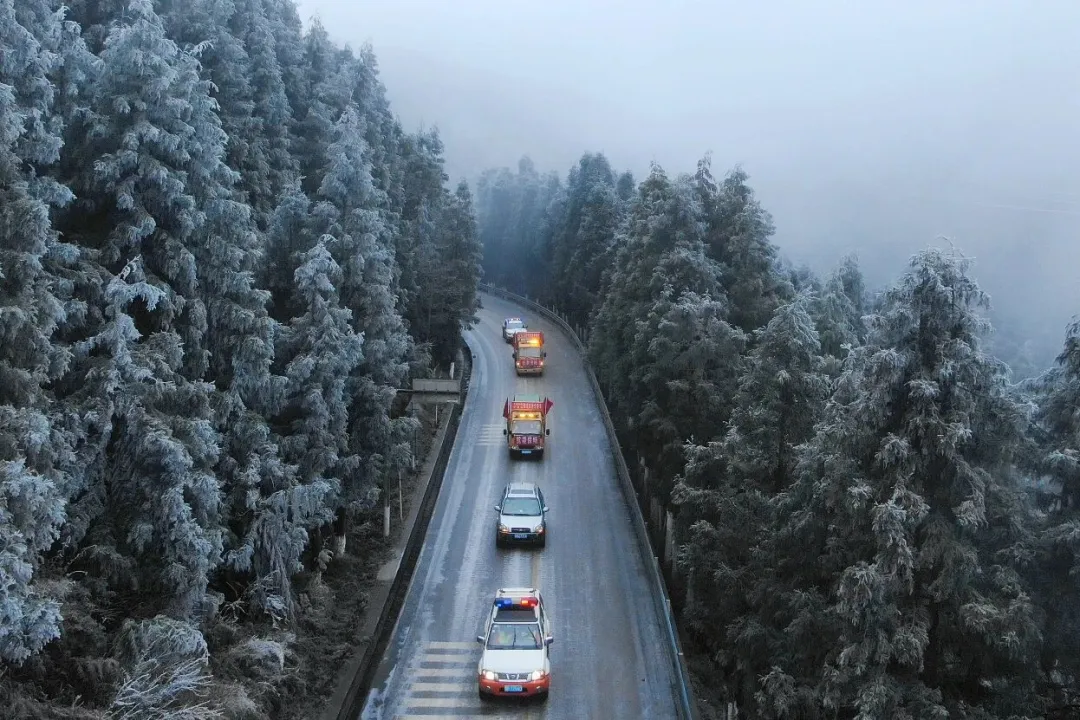 G356线K2405+900m至2418+500m段除冰车队(李鹏 摄)