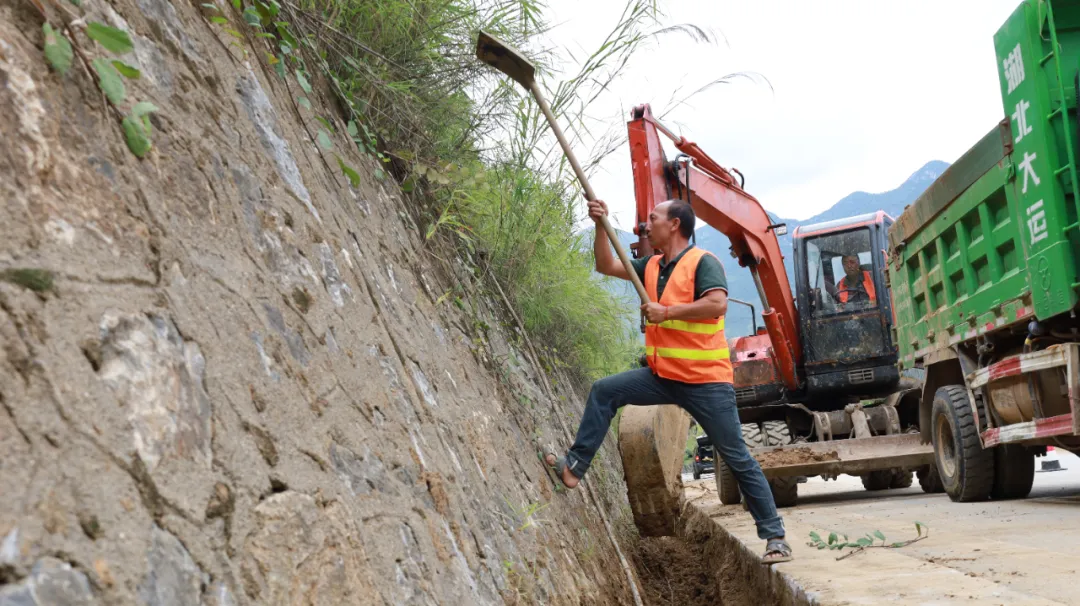 面对部分路段边沟堵塞、路肩杂草丛生、零星塌方未清、严重地灾道路塌陷等问题,及时开展小修养护。清沟疏涵保畅通,养护人员使用机械设备,对全线边沟、涵洞进行了清挖疏通,确保了雨季排水顺畅,从根本上消除了水毁隐患。除草护路展新颜,针对侵占路肩、影响视线的茂密杂草,工作人员利用割草机与人工清理相结合的方式,进行了全面清除,使路容路貌快速清爽。清理塌方除隐患,对边坡小规模塌方体,迅速将塌方土石清运干净,恢复了道路有效路面。完善标识促规范。为便于精准定位施工位置,规范安装临时公里桩牌,这些“公路临时身份证”的设立,既为过往车辆提供了清晰的里程指引,又极大提升了公路管理的规范化水平。拓宽路基提效能,针对S216线地灾路段,投入挖掘机、转载机、自卸车等机械设备,进行了针对性的路基路面拓宽与挖填处理,有效提升了道路的通行能力和安全性。