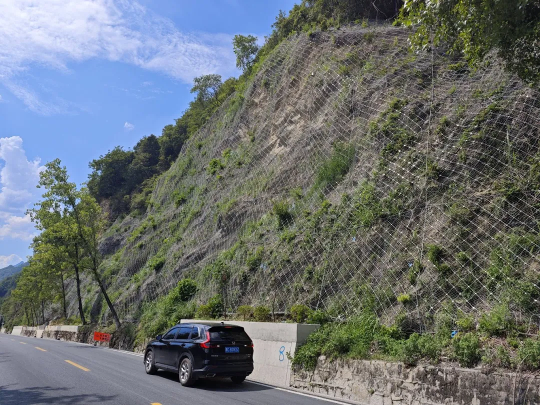 习水段管养边坡共计430处,土质边坡27处,岩质边坡389处,填方边坡14处,其中风险等级为二级的边坡及地质灾害风险点共13处,2025年边坡技术状况评定中4类边坡14处。累计投入边坡养护专项经费超1850万元,其中边坡日常养护经费130.6万元,用于清理边坡崩塌落石、安装边坡提示标志标牌、新增和更换主动防护网;项目处置经费约1663.3万元,用于灾害防治项目16个地灾点位;科技监测项目56.8万元,用于2025年轻量化监测5个风险边坡,实时监测边坡位移变化。