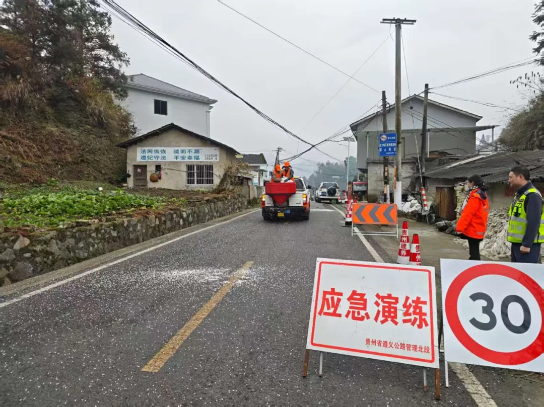 12月3日,遵义公路管理北段联合遵义公路建设养护有限公司在毛石镇百花村(S306线K180+500-800路段)开展防冻防滑应急演练,模拟该路段因低温出现路面结冰的场景。演练现场,20名应急抢险人员迅速集结到位、各司其职,应急作业车辆有序进行融雪剂撒布作业。