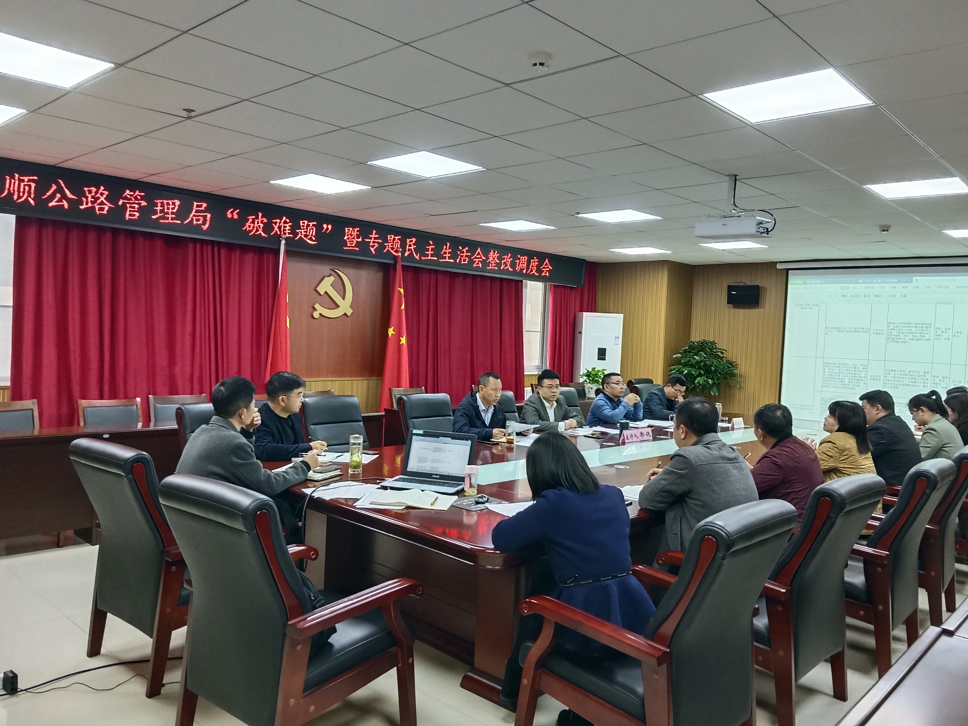 为巩固深化党史学习教育成果,3月10日上午,安顺公路管理局组织召开“破难题”暨党史学习教育专题民主生活会整改工作调度会,对该项工作进行调度和安排。会议由党委书记郭锐主持,在家局领导、局机关相关科室负责人参加会议。