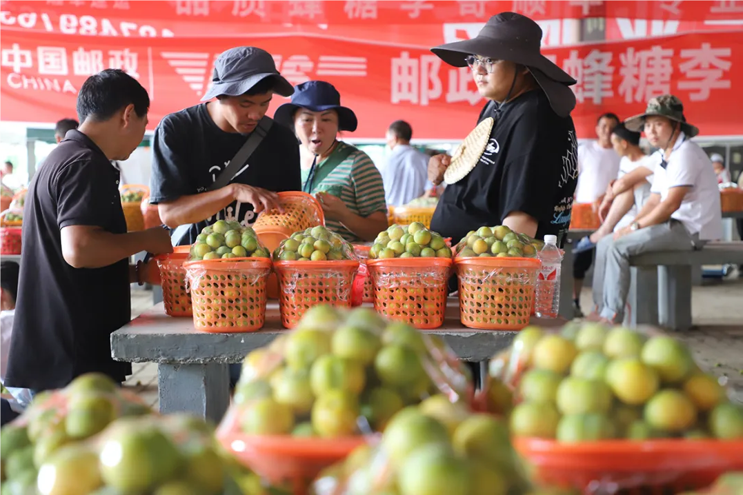 客商在G354旁蜂糖李交易中心选购蜂糖李(图片来源于网络)