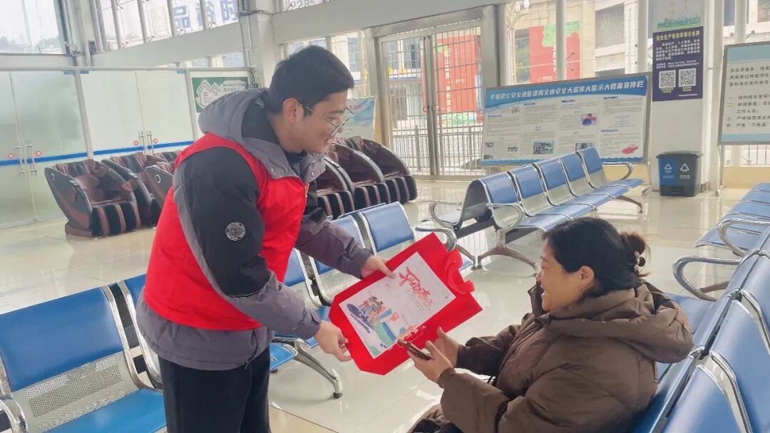 2月2日,长顺、平塘公路管理段组织开展平安春运志愿服务活动。志愿者热情帮助乘客搬运行李,讲解雨雪天气行车安全与酒驾危害,并对重点路段进行提示。用暖心服务护航旅客平安返乡,传递冬日温暖。