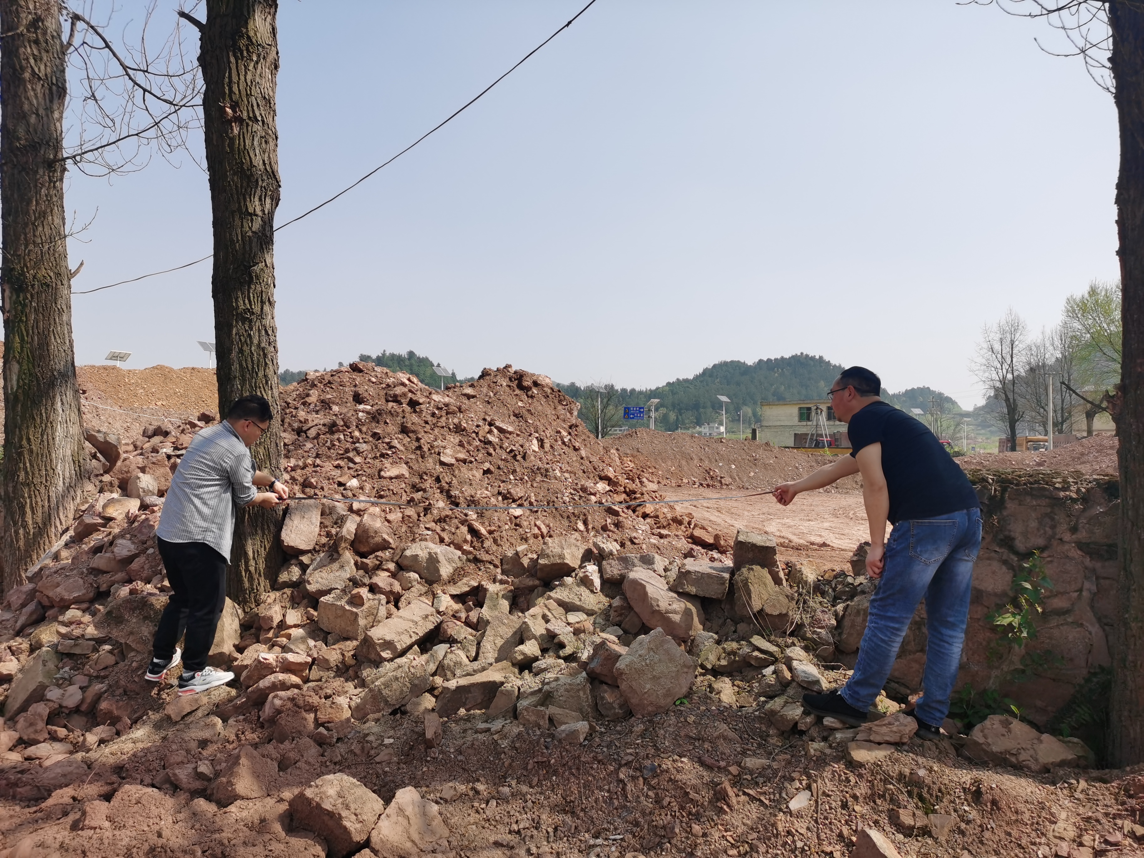 工作人员现场勘查测量