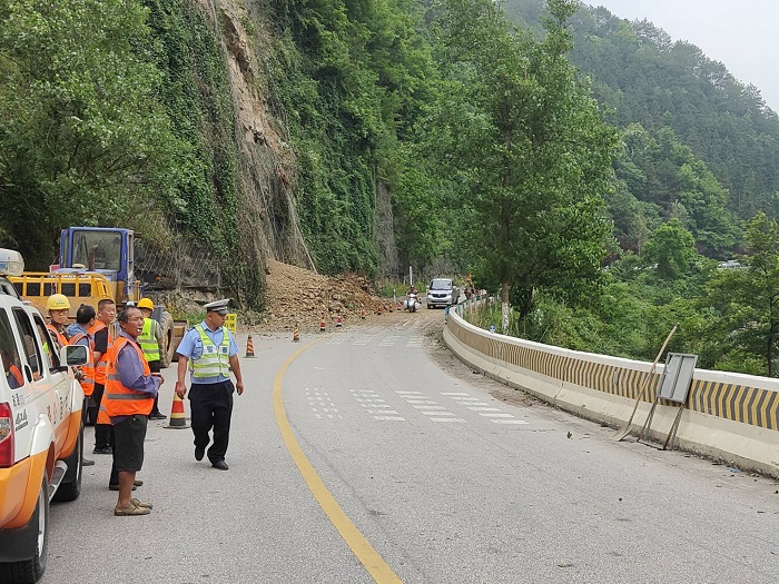 2025年5月24日12点25分,因降雨导致G320线K1905+900处(黔东南苗族侗族自治州台江县台盘乡南瓦隧道附近)上行左侧上边坡垮塌(长度约15米,高度约1.2米,宽度约6米,方量约108立方),交通道路全幅阻断。已对滞留车辆及人员进行劝返,台江公路管理段、台江县交警部门等均在现场开展管制,待落石稳定后即开展清理。经处置于2025年5月24日15:30分恢复半幅通行