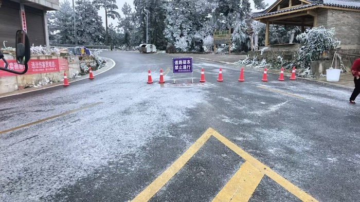 5、2026年1月22日8时10分,麻江公路管理段管辖S206新四线K284+000至K289+000(黔东南苗族侗族麻江县坝芒乡水城村水头坡至贵定管养交界)路段,因持续低温路面凝冻,交通阻断,交警部门已进行交通管制,无绕行路线,对过往车辆及行人进行劝返,无车辆、行人滞留。麻江公路管理段开展除冰保畅措施,预计2026年1月22日12时恢复通行。