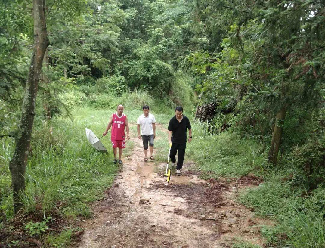 图为:与村两委一同测量产业路项目数据 吴小相 摄