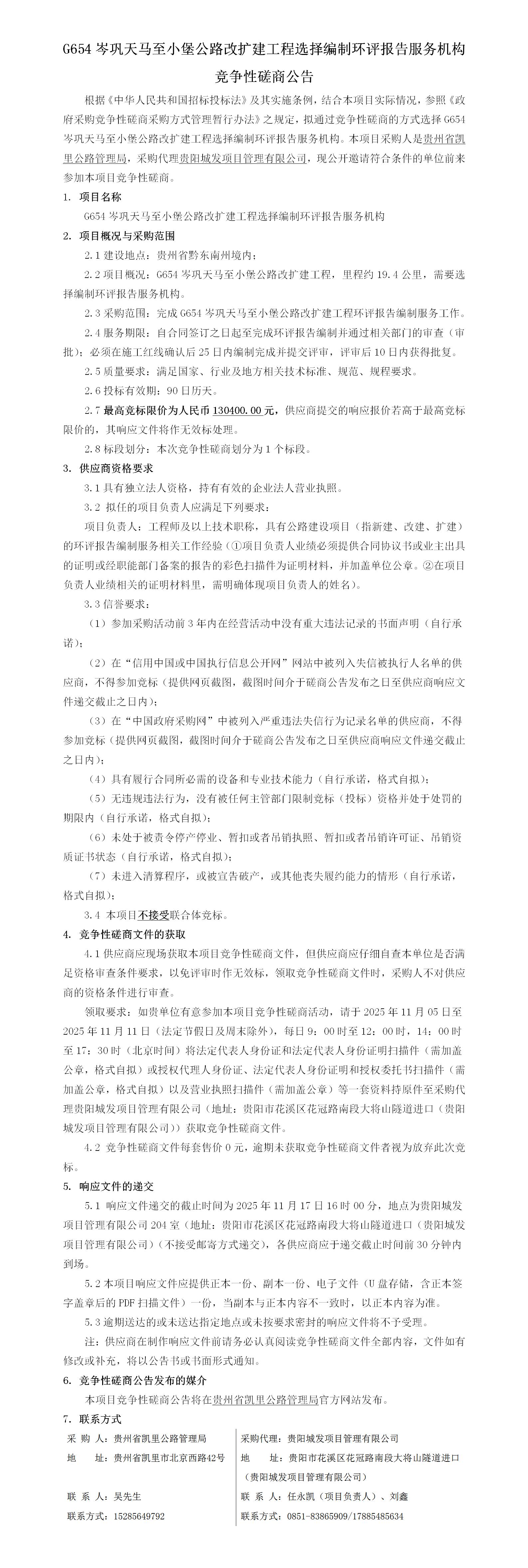 G654岑巩天马至小堡公路改扩建工程选择编制环评报告服务机构竞争性磋商公告