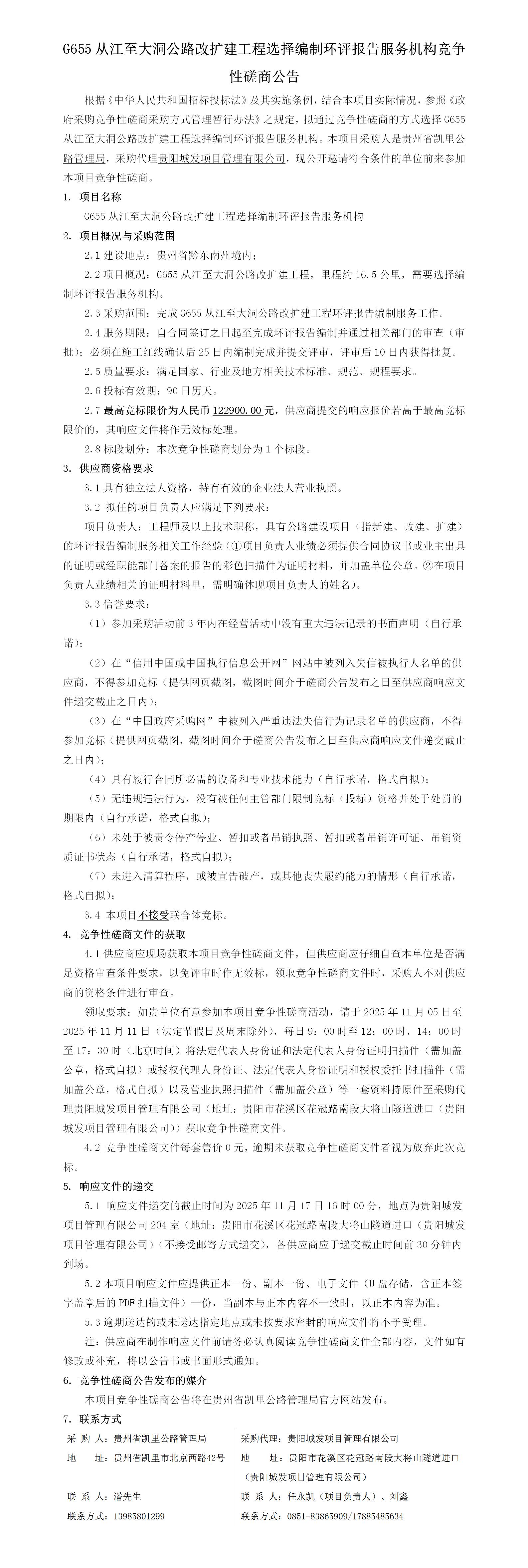 G655从江至大洞公路改扩建工程选择编制环评报告服务机构竞争性磋商公告
