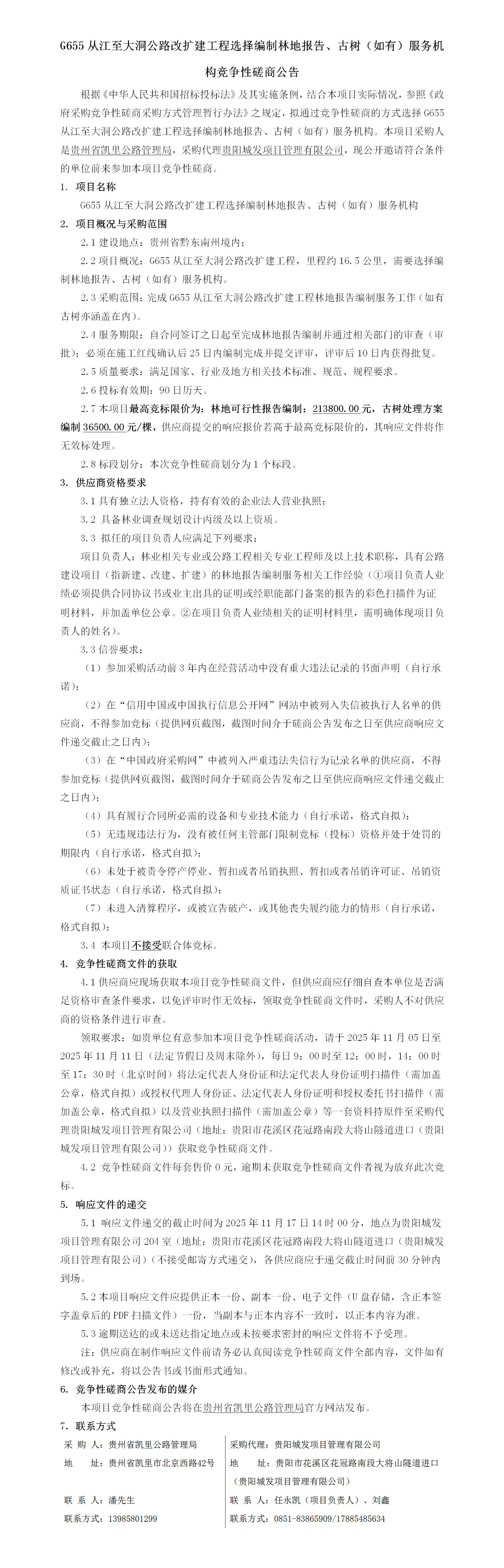 G655从江至大洞公路改扩建工程选择编制林地报告、古树(如有)服务机构竞争性磋商公告