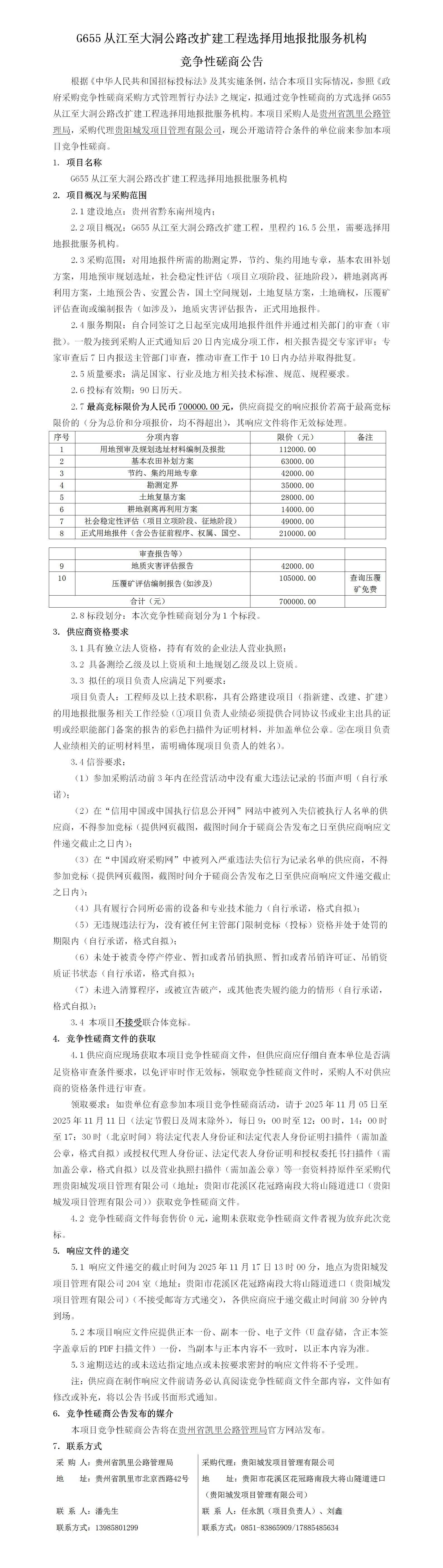 G655从江至大洞公路改扩建工程选择用地报批服务机构竞争性磋商公告