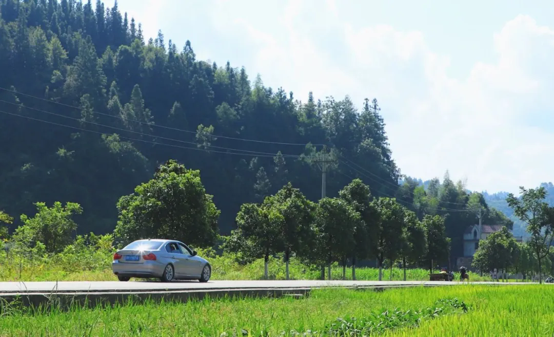 行至小佳所停车区,便循着草木清气驻足暂歇。坐在鼓楼之下,指尖轻触木柱上被岁月打磨得温润的纹路,耳畔不时传来孩童清脆的嬉笑声,仿佛这里的生活从未被速度裹挟,时间如身旁的溪水般缓缓流淌,温润而恒久。稍作休整再启程时,阳光已斜洒在路面,树影婆娑间,光影在车轮下织就出流动的图案。