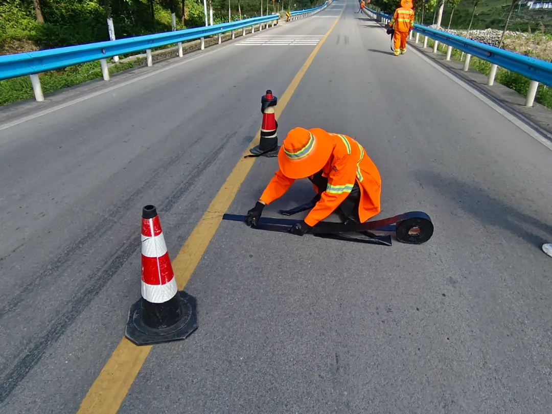 创新驱动,激活“智慧引擎”。加快养护模式“被动应对”向“智能绿色”转型,着力打造集可视化、智能化、信息化为一体的养护新模式,全面加强新技术与公路基础设施数字化、公路管理业务信息化深度融合,在桥梁布设GNSS位移监测站,实现沉降位移实时预警;在隐患路段加装高清监控,实现路况可视化管理;在多雾路段安装太阳能雾灯与LED发光标,实现未雨绸缪,全力保障公路通行安全。自主研发“可调节角度护栏安装起重机”获国家实用新型专利,大幅提升作业效率与安全;创新应用“玄武岩纤维格栅”技术提升路面承载能力和整体稳定性,一次又一次的探索革新,均是六枝公路人锐意进取、开拓创新的最好见证。