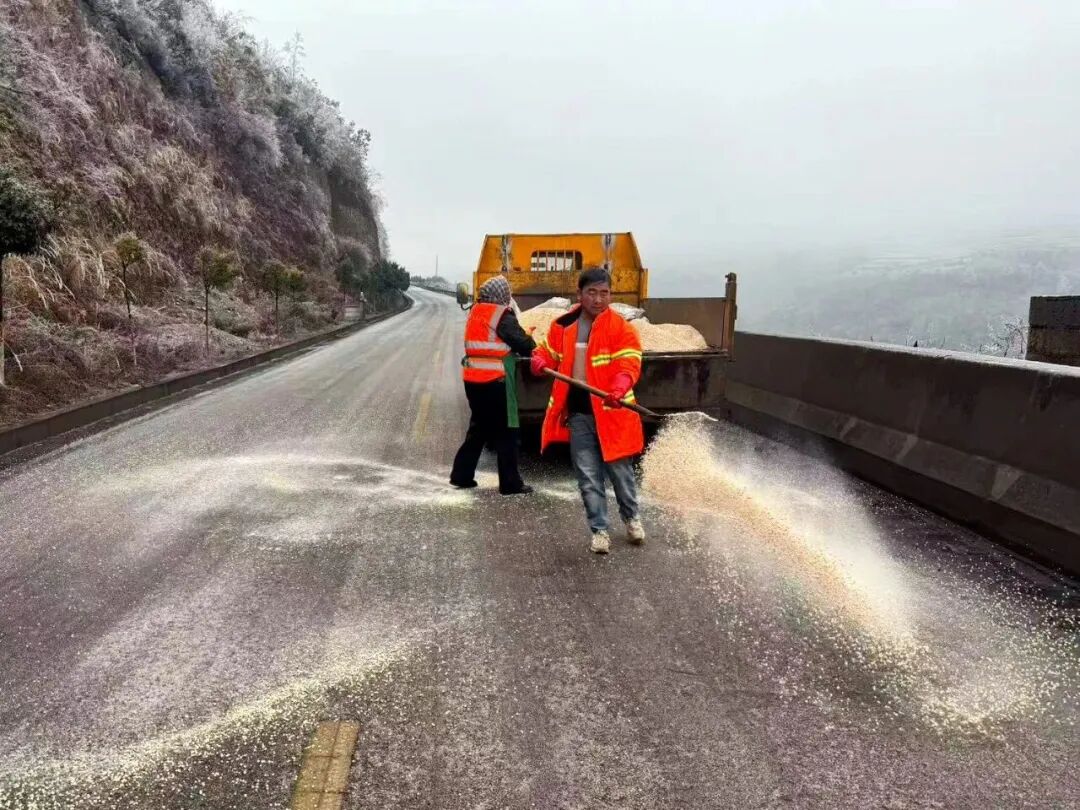 为切实保障公路安全畅通,水城公路管理段第一时间统筹调配机械与人力,全面开展融雪除冰作业,重点强化急弯、陡坡、桥面等易结冰点位融雪防护,并对机械作业盲区进行细致清扫和凝冻清除,实现全覆盖处置。