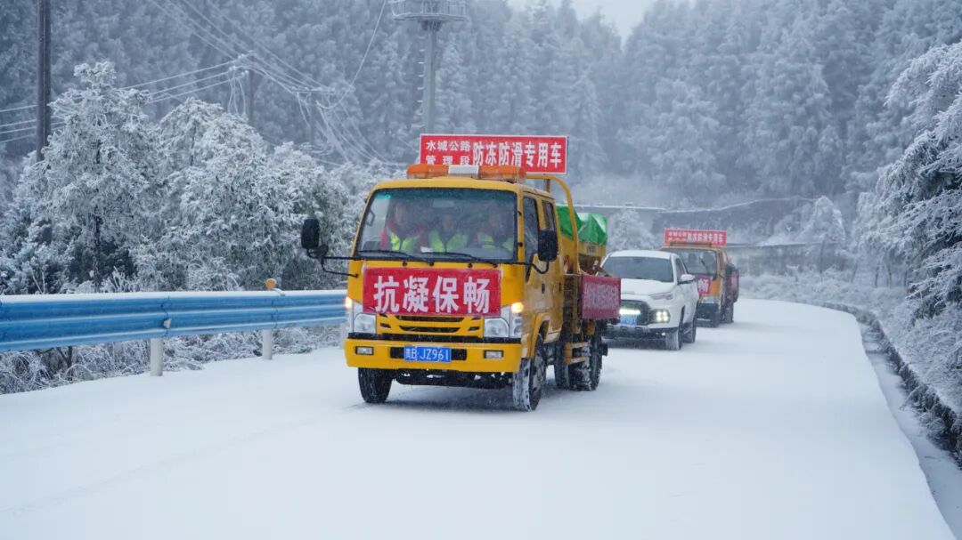 当春运遇上凝冻,普通国省干线作为畅通客运干支衔接的最先和最后一公里,保畅任务艰巨。夜间低温出现路面凝冻,交通管制路口前往往排起长队,清晨气温回升,橙色的融雪剂撒布车开始上路,养护人员一路跟随铲除积雪,以及帮助被困半路的司乘人员,路就被抢通了。水城公路管理局提前成立冬季道路防冻防滑和春运保通工作领导小组,拟定印发应急预案,加强易凝冻路段巡查频次,及时除雪铲冰,抢通凝冻路段。春运期间,累计投入巡查车辆702台次、巡查人员1787人次、机械设备76台班,撒布融雪剂105.7吨、防滑砂71.4吨,累计除雪铲冰里程274.807公里,抢通凝冻路段20处。