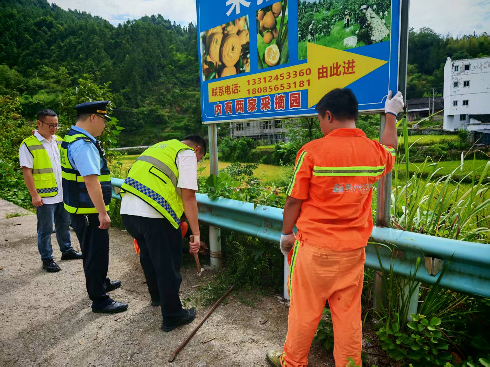 公路“颜值”关乎形象,更关乎出行体验。针对沿线摆摊设点、非法标志标牌、非法喷绘广告、垃圾堆积等“顽疾”,联合贵州省交通运输综合行政执法四大队、交警等多方力量开展路域环境综合整治,对G354沿线开展拉网式排查与集中整治,通过清理杂物、规范标志标牌、绿化美化边坡等系列“美容行动”,有效提升路容路貌。江口公路管理段与贵州省交通运输综合行政执法四大队开展联合巡查4次,查处墙上非法喷绘广告、沿线非法广告牌、占道经营等违法行为12起,同时向沿线群众宣传爱路护路知识,营造“爱路护路、人人有责”的社会氛围,推动路域环境从“一时净”向“长期美”转变,让公路成为一道靓丽风景线。
