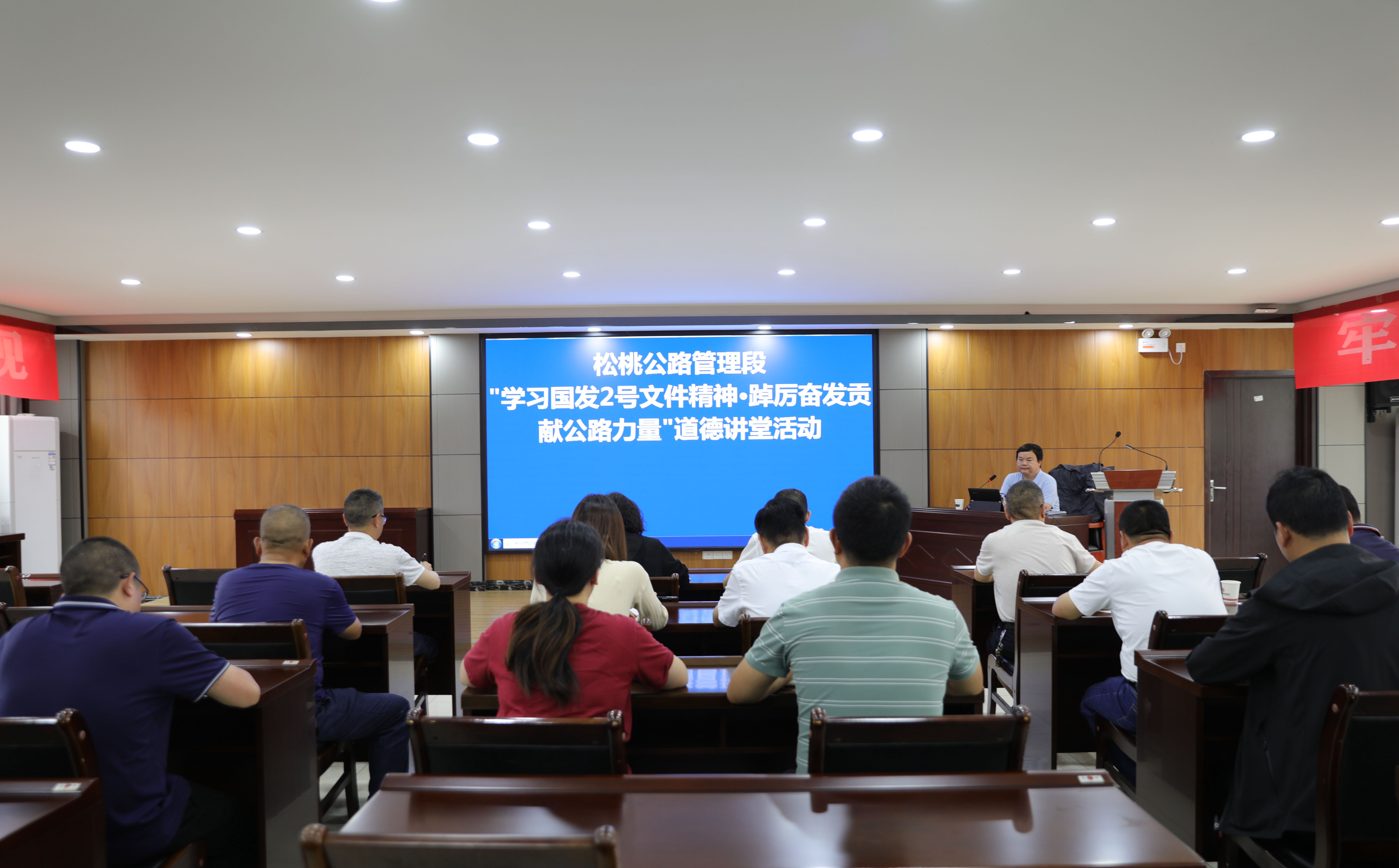 5月24日,松桃公路管理段到机关会议室开展主题为“学习国发2号文件精神·踔厉奋发贡献公路力量”的道德讲堂活动。活动邀请松桃县委党校老师系统讲解新国发2号文件精神,段机关全体干部职工及各站站长参加。