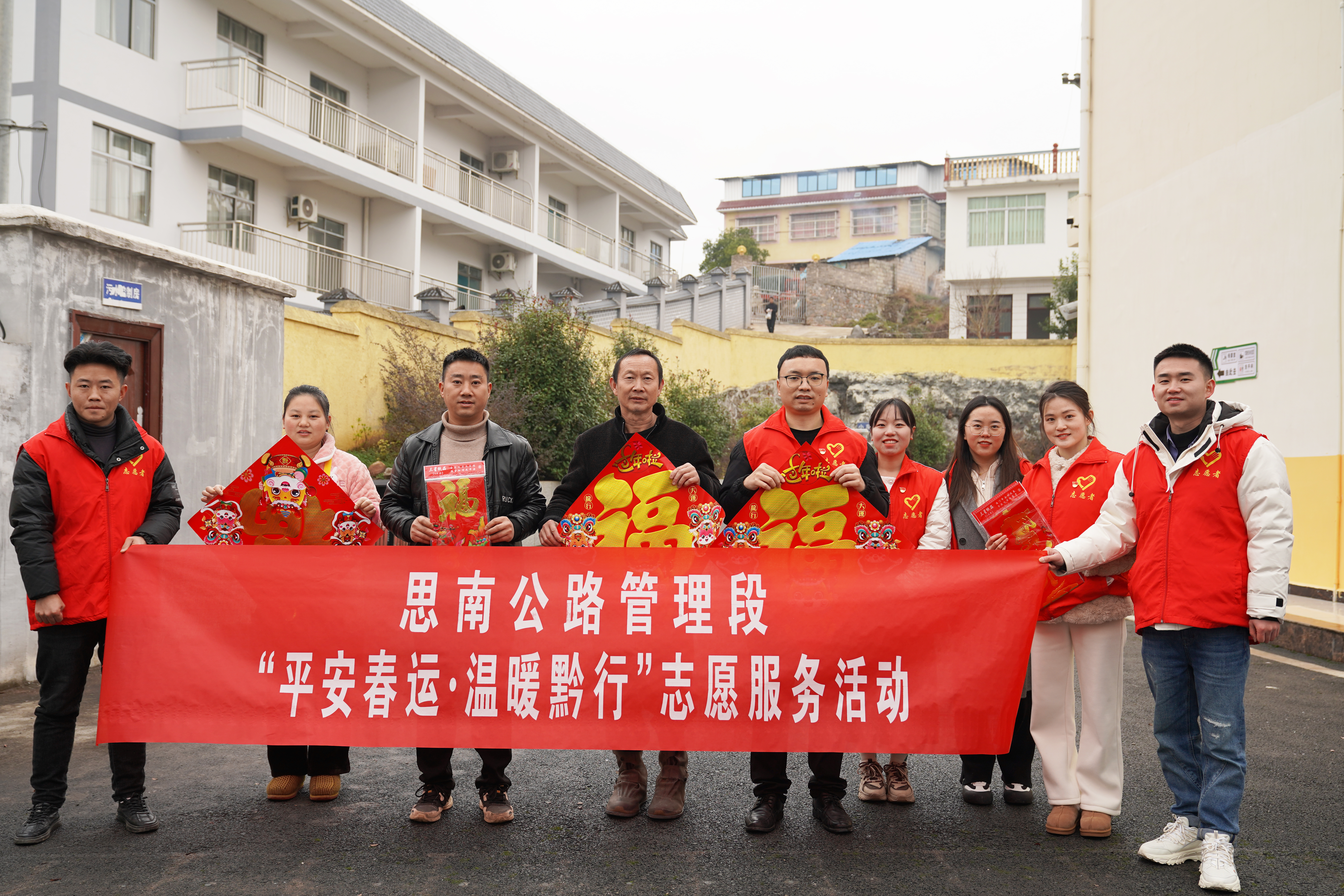 在热闹的送春联送祝福活动中,思南段志愿者们积极向群众宣传春运期间公路安全知识,凝冻天气注意事项等,并耐心细致解答群众提出的问题,同时还送上了春联和福字,祝愿他们度过一个欢乐祥和的节日。一句句问候话语、一张张关切笑脸,将关怀送进了大家心中,以真情和实际行动温暖了他们的心。