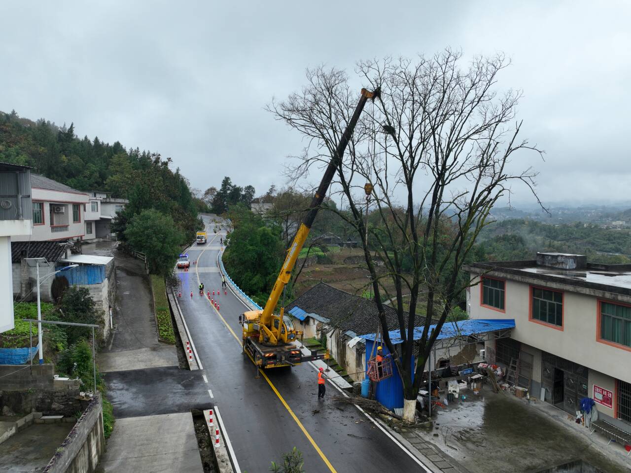 11月10日,石阡公路管理段在日常巡查中发现国道211线K2039+600处一株枯死高大树木,对行车安全造成巨大安全隐患。石阡段立即组织人员清理危树,并联合当地乡政府对现场进行临时交通管制,工作人员利用起吊车、油锯、绳索、清运车等工具进行作业,历时4小时,危树被全部清理干净,交通管制解除并恢复安全通车。