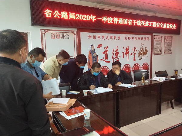 4月8日,省公路局安全质量监督管理处处长李显全率检查组一行到S214线册亨至八渡段灾毁恢复工程开展2020年第一季度安全质量检查及疫情防控督查工作,兴义公路管理局总工程师龚殿龙、技术科、安监科相关负责人陪同。