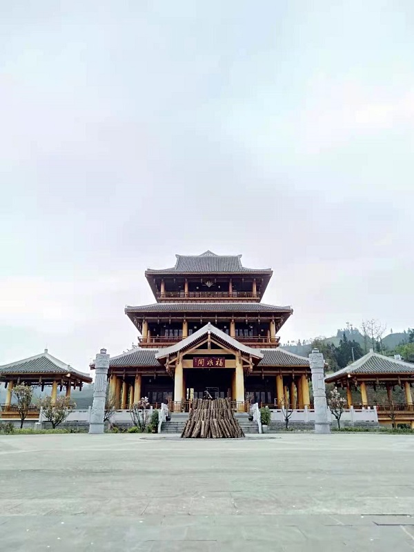 茶场这个地方,仿佛就是天生的产茶风水宝地,在这里是很少有晴天和大雨天的,几乎一年四季都是阴雨绵绵,“天无三日晴”形容此处再适合不过。毛发般细小的雨丝带来了天然的水分,比起人为建设的水渠来说,美的协调性是极为明显的;轻纱般的薄雾为这满山的茶树点缀了诗情,行走在这茶树间,如同行走在一幅山水油墨画中,对这美景怀有惦念的人,不妨放下手中的凡尘种种,邂逅一场画中游。顺着地势往下走,来到一处名为福娘阁的木质高楼,楼前耸立着六根巨大的石柱,石柱上刻有代表茶生产工艺的图样,图样下边有工艺介绍,每一根石柱上的图样各具特色,形态万千。在工作人员的介绍下,方才明了这六根石柱分别代表六种不同的茶工艺,在其中一根代表普安红生产工艺的石柱下驻足,思忖良久,原来普安这地方已有千年产茶史,最早的可追溯到100多万年前的新生代第三世纪四球茶茶子化石,你不得不感叹大自然因地造物的神力,你不得不感叹当地劳动人民顺应自然规律、因地制宜的高超本领。阁的两边角上,各建有阁楼,几名身穿布依民族服饰的姑娘在几名上了年纪的老艺人带领下,用布依族独有的民族方言唱着“男女老少游,乐开怀”的民族歌曲。阁内陈列着布依少女福娘木质雕像,在雕像前静静打量几许,在工作人员的介绍下,才知晓在普安民间传说中,福娘是布依人文始祖布洛陀的妻子,因用茶叶治好了族人的病,后人尊称其为茶神,并在此修建福娘阁进行缅怀。