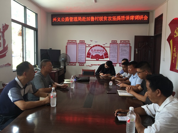 随后,与加鲁村召开座谈会,听取加鲁村脱贫攻坚工作情况汇报,并就如何高效推进加鲁村脱贫攻坚工作与驻村干部、村支两委干部进行了交流探讨。朱光学对加鲁村脱贫攻坚工作给予充分肯定,他指出,兴义局党委高度重视加鲁村脱贫攻坚工作,聚焦加鲁村脱贫攻坚的重点难点,全力履行好帮扶职责,提升各项帮扶成效。希望加鲁村驻村干部继续保持攻坚态势,及时查缺补漏,充分发挥在脱贫攻坚战中的“中流砥柱”作用,带着感情、带着情怀做好帮扶工作,因户因人精准施策,不断提高群众的认可度和满意度。