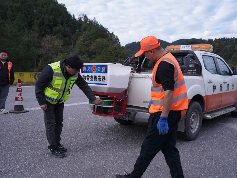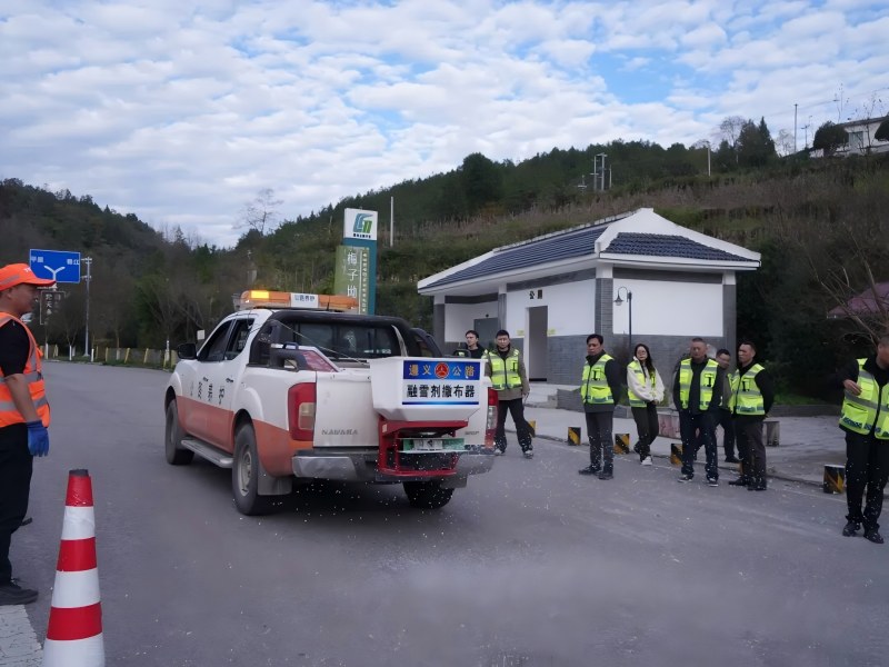 11月19日,凤冈公路管理段联合省公路建设养护集团有限公司在G326线梅子坳停车区开展冬季防冻防滑演练。