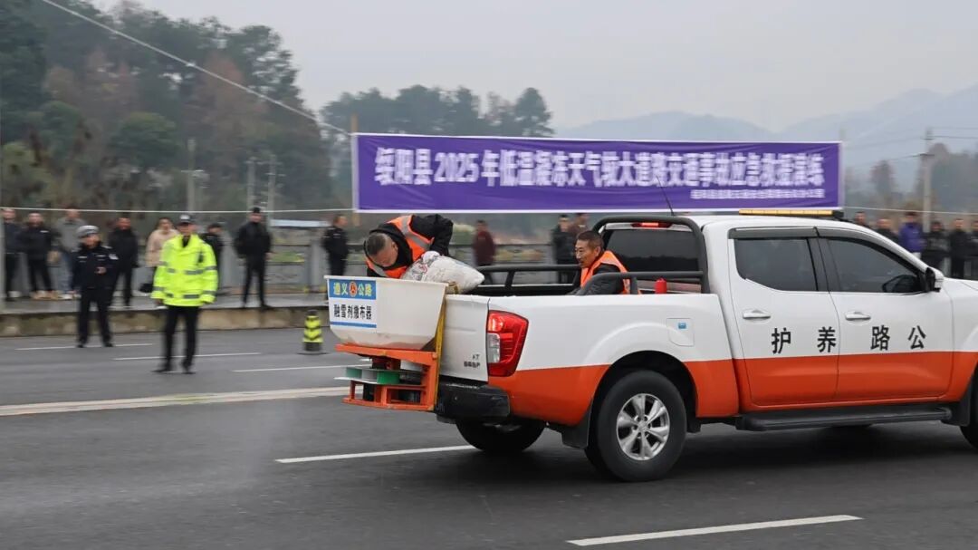 12月30日,绥阳县2025年低温凝冻天气较大道路交通事故应急救援演练在洋川街道红旗西路举行,绥阳公路管理段参加演练。