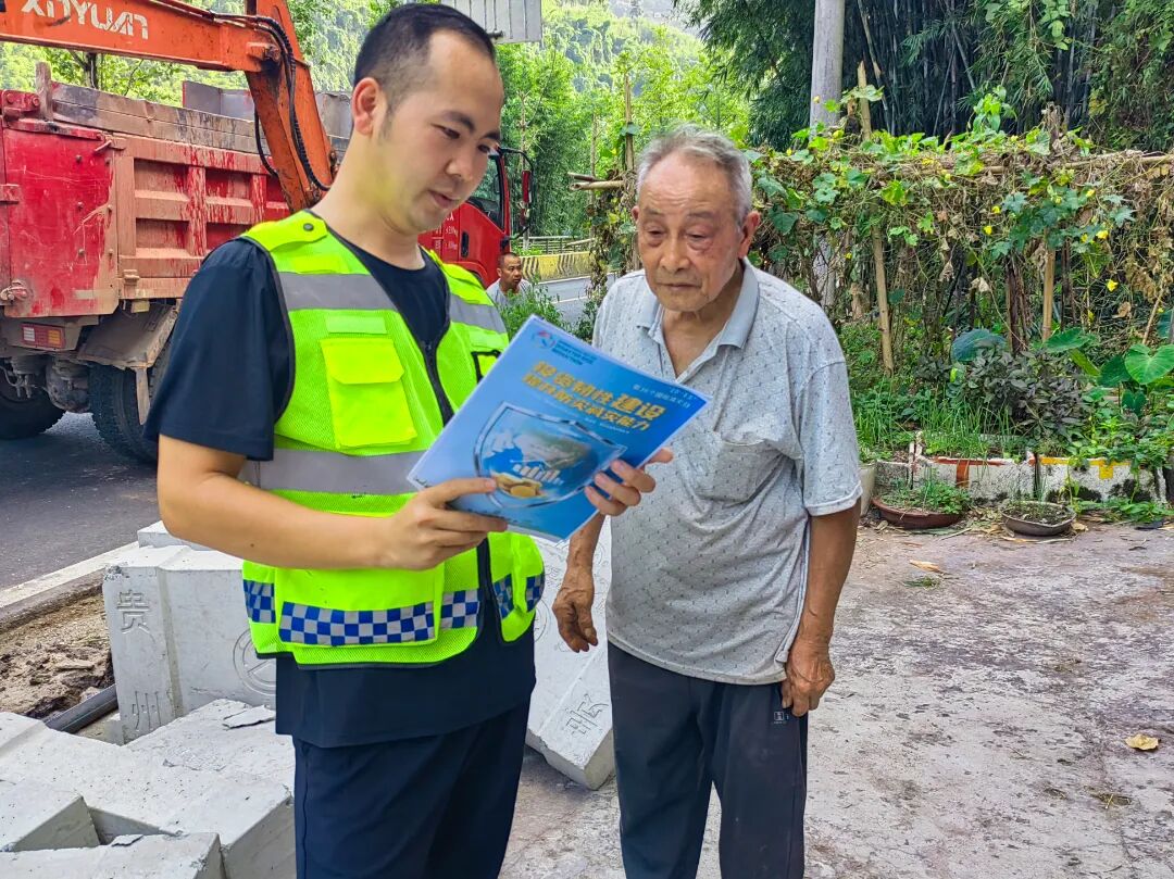 赤水段工作人员向沿线群众发放宣传资料(赵小明 摄)