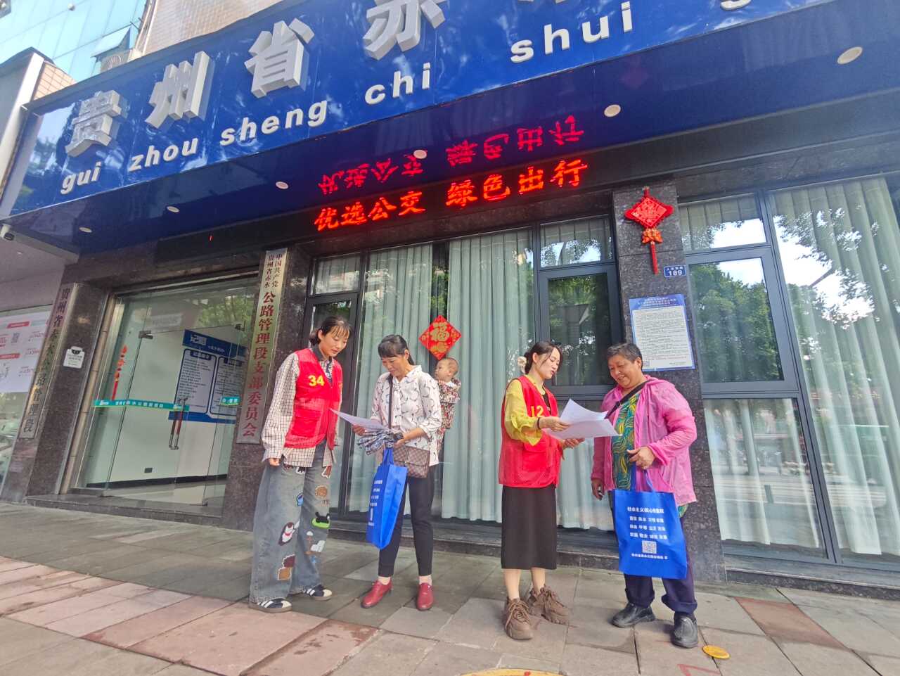9月24日,赤水公路管理段向市民发放宣传册,介绍公交线路及公交服务,倡导公众绿色出行。(王琦 汪奕坤)