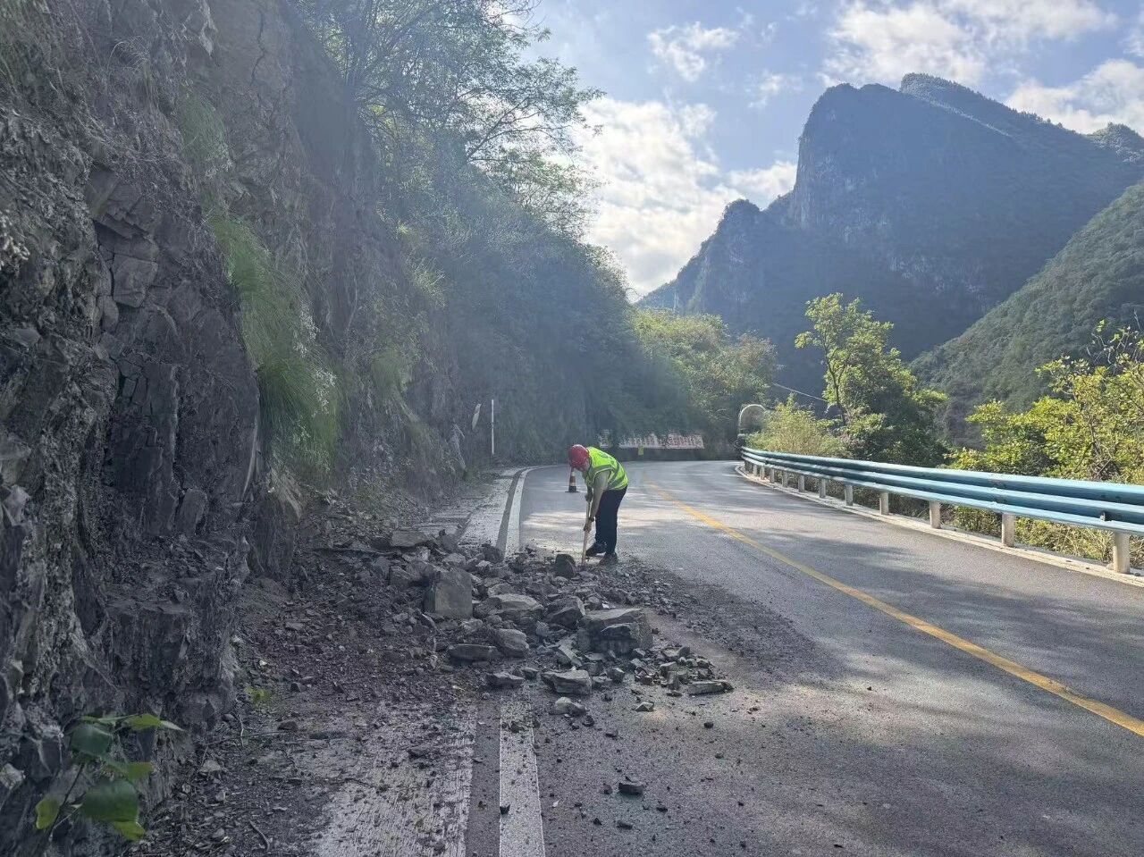 近日,仁怀公路管理段管养的G212线K1520+700处出现边坡落石,仁怀段了解情况后,立即安排养护人员到现场进行清理。
