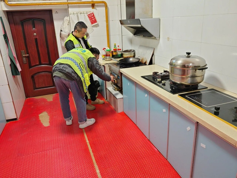 桐梓公路管理段检查段机关食堂厨房燃气设备安全(陈诺 摄)