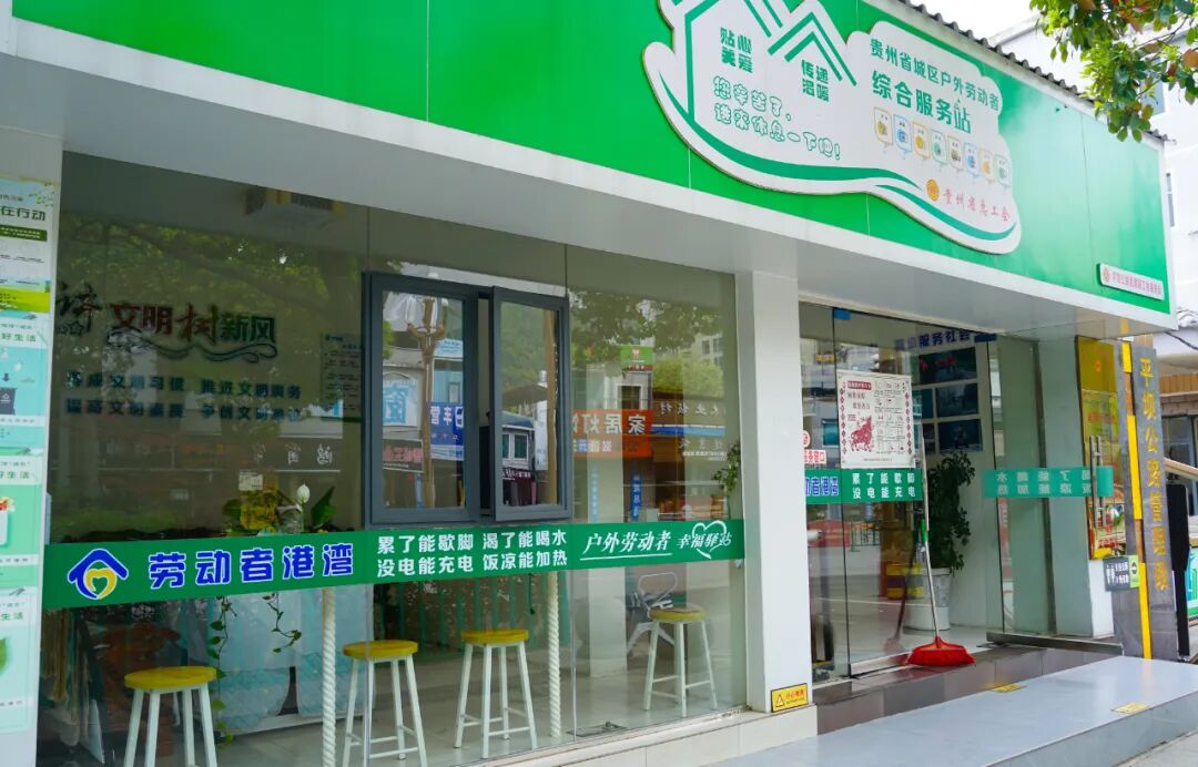 如今的服务站,通过精心运营与合理规划,实现歇脚、饮水、充电等基础服务高频运转;环卫、骑手、交警等户外劳动群体的使用率越来越高,从初建时的“名不见经传”,到先后斩获全国总工会“最美服务站”、贵州省总工会“省级示范点”及安顺市总工会“市级示范点”等荣誉,获得的奖金又全部投入到设施升级和物资采购中,形成“以荣誉促提升”的良性循环。