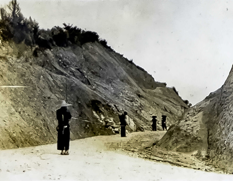 1956年,册三公路平塘段关上垭口技术员在勘察测量。图片为翻拍