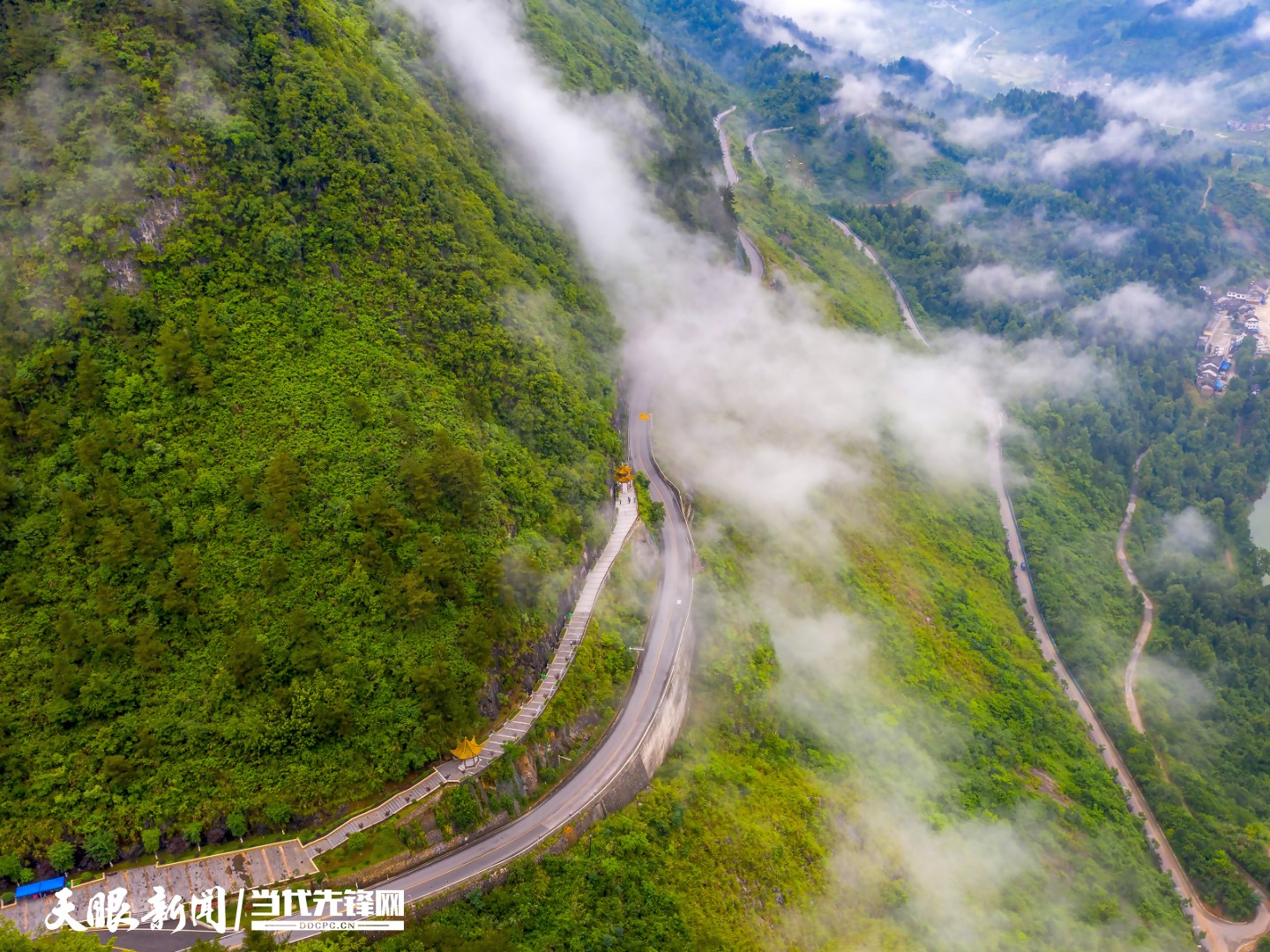 国道552线平塘平里河沙坪垭口路段全景