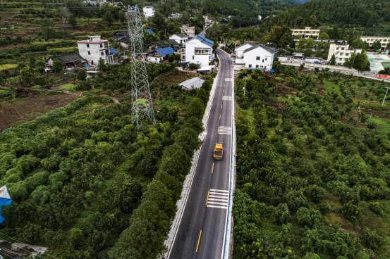 秋阳下,新铺的沥青路面宛如墨缎,与沿线万亩柚园的金果、郝家湾古寨的飞檐相映生辉,一条承载着民生福祉与产业希望的振兴之路,正伴着丰收的节拍向着远方延伸。