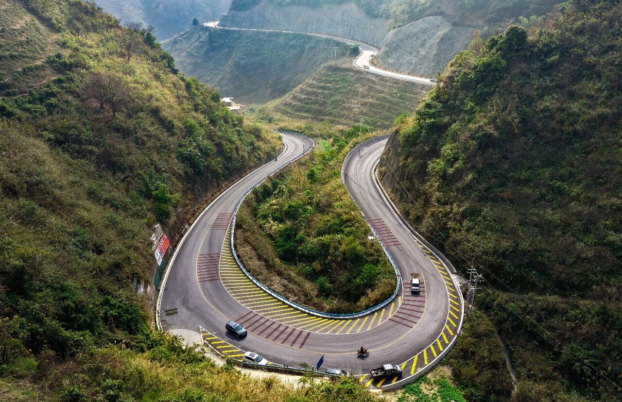 乐坝公路克服复杂的地形做好安全防护工程,确保急弯陡坡路段通行顺畅