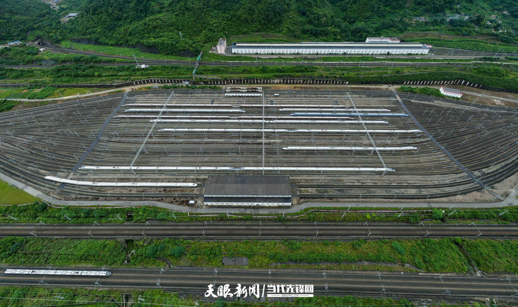 2025年7月1日清晨,在位于贵阳市白云区的贵阳北动车所内,动车组列车整装待发。
