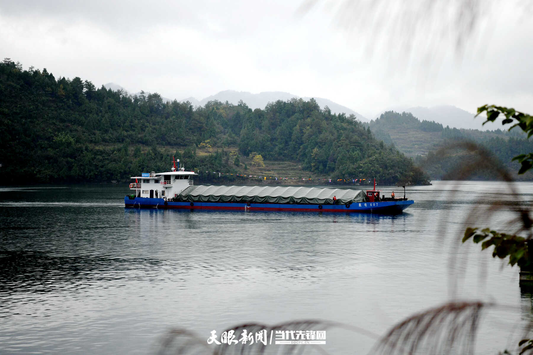 2021年11月16日,一艘货轮行驶在余庆县樱桃井码头水面。代鑫 摄
