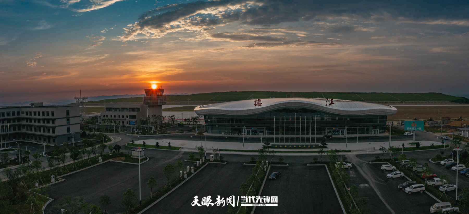 2025年7月7日,航拍铜仁德江机场日出时分的景色。冯胜彦 摄