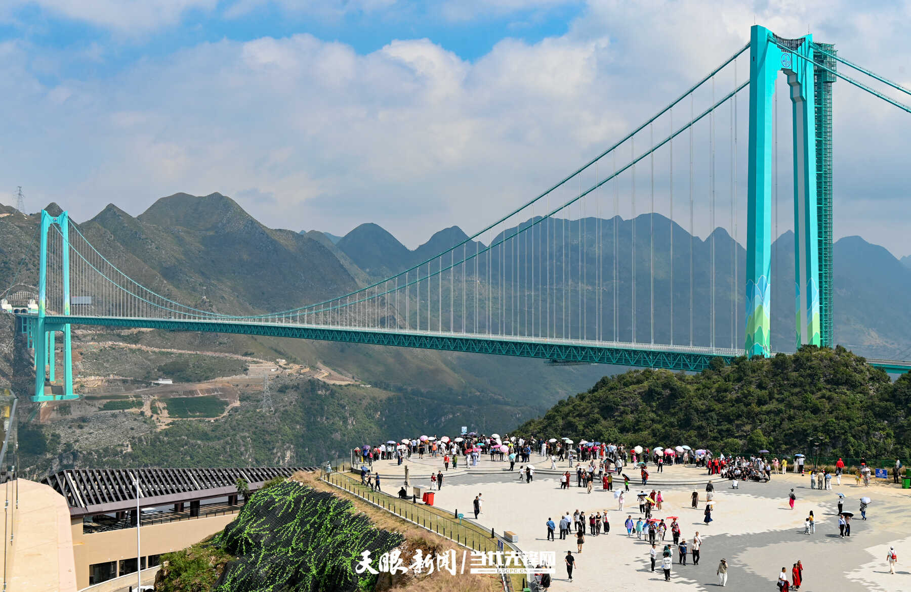 2025年10月12日,游客在花江峡谷大桥景区参观。